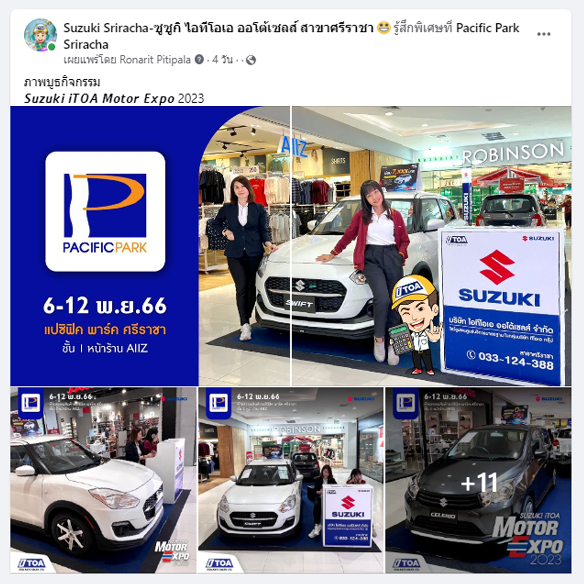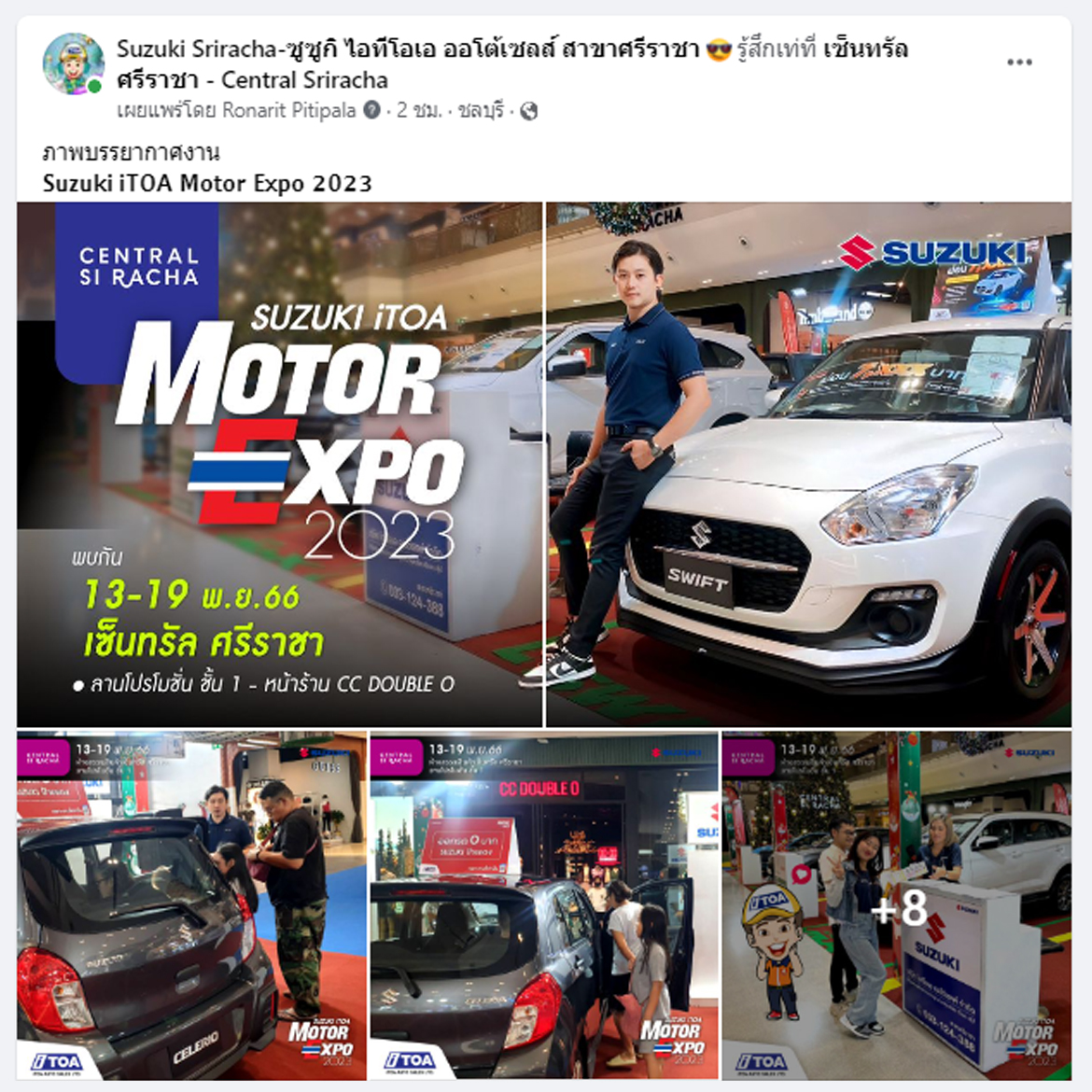 โฮ๊ะ..โฮะ.โฮ่ วันนี้พี่โตเอะ นำภาพบรรยากาศ บูธกิจกรรมสนุก ๆ งาน 𝗦𝘂𝘇𝘂𝗸𝗶 𝗶𝗧𝗢𝗔 𝗠𝗢𝗧𝗢𝗥 𝗘𝗫𝗣𝗢 𝟮𝟬𝟮𝟯 ระหว่างวันที่ 9-16 ธันวาคม 2566 ณ 𝗖𝗲𝗻𝘁𝗿𝗮𝗹 𝗖𝗵𝗼𝗻𝗯𝘂𝗿𝗶 ชั้น 1 หน้าร้านมิสเตอร์โดนัท กันนะครับ . มามอบของขวัญสำหรับคนพิเศษ! ต้อนรับปี 2567 จองรถงานนี้ รับข้อเสนอเดียวกับ มอเตอร์เอ็กซ์โป ออกรถใหม่ป้ายแดง ใช้เงินเริ่มต้นแค่ 𝟎 บาท ได้ของแถมแน่น ๆ จัดให้จุใจไปเลย . ┏━━━━━━━━━━━━━━━━━━━━━┓ ห้ามพลาด 𝑷𝙍𝑶𝙈𝑶𝙏𝑰𝙊𝑵 พิเศษสุด!! 𝗦𝘂𝘇𝘂𝗸𝗶 𝗖𝗶𝗮𝘇 ดอกเบี้ย 𝟎% หรือ ออกรถ 1,900 บาท 𝗦𝘂𝘇𝘂𝗸𝗶 𝗦𝗪𝗜𝗙𝗧 ออกรถ 𝟎 บาท หรือ
